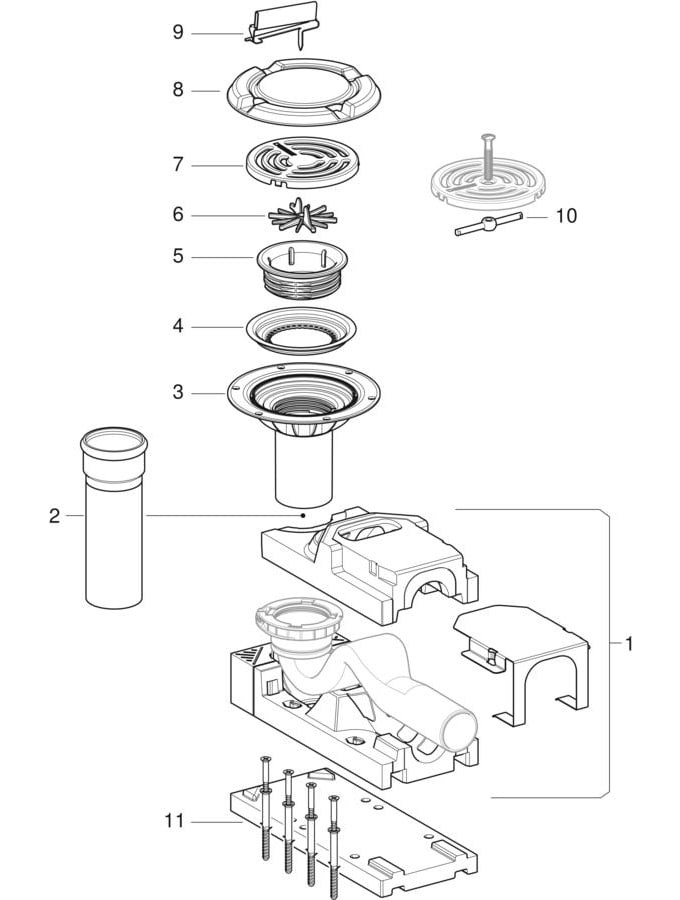 Geberit Rost Square Ø 10 cm, Höhe 0,8 cm, verschraubbar, rund