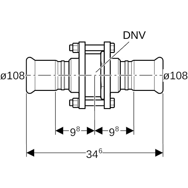 Rohraußendurchmesser alle Anschlüsse 108 mm