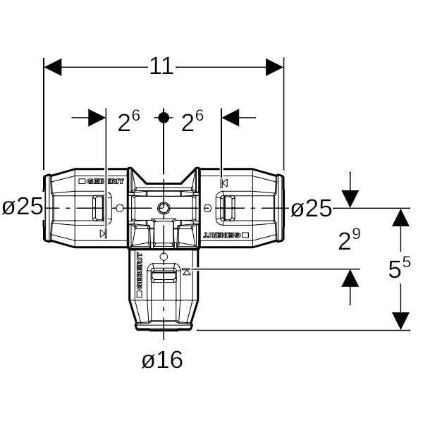 Geberit T-Stück PushFit Ø 25 x 16 x 25 mm, reduziert, PVDF