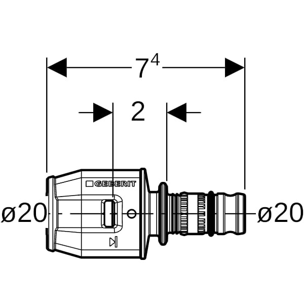 Geberit Übergang PushFit Ø 20 x 20 mm, auf Mepla, PVDF