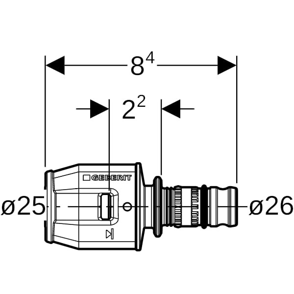 Geberit Übergang PushFit Ø 25 x 26 mm, auf Mepla, PVDF