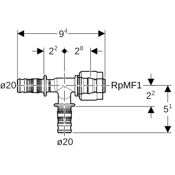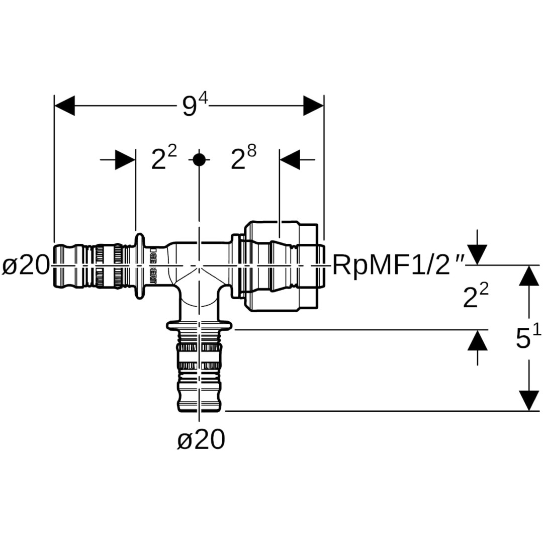 Geberit Übergangs-T-Stück Mepla Ø 20 mm, MF20, mit MasterFix, Abzweig, PVDF