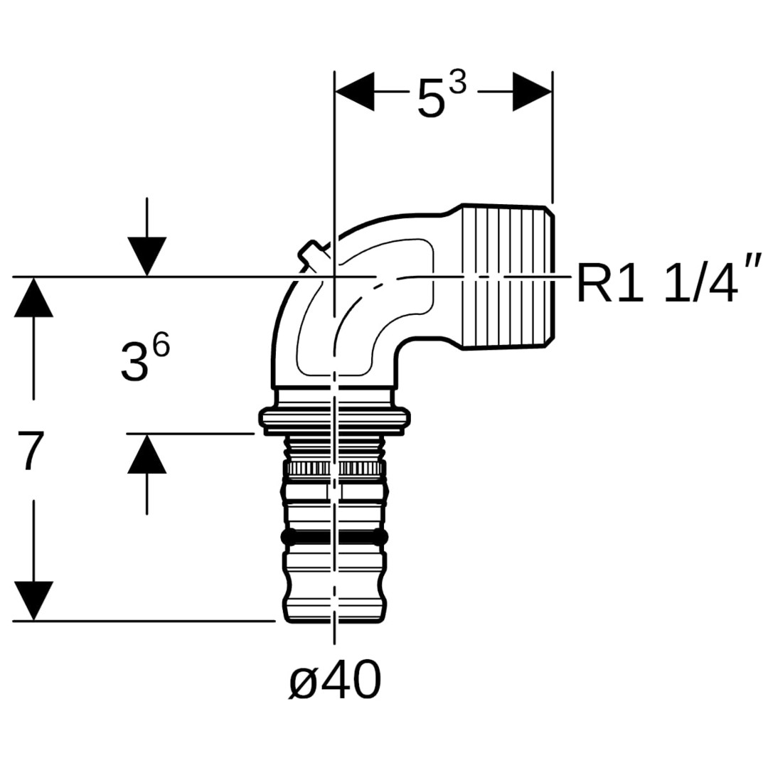 Geberit Übergangsbogen Mepla Ø 40 mm x R 1 1/4, 90Grad, mit Außengewinde, Rotguss