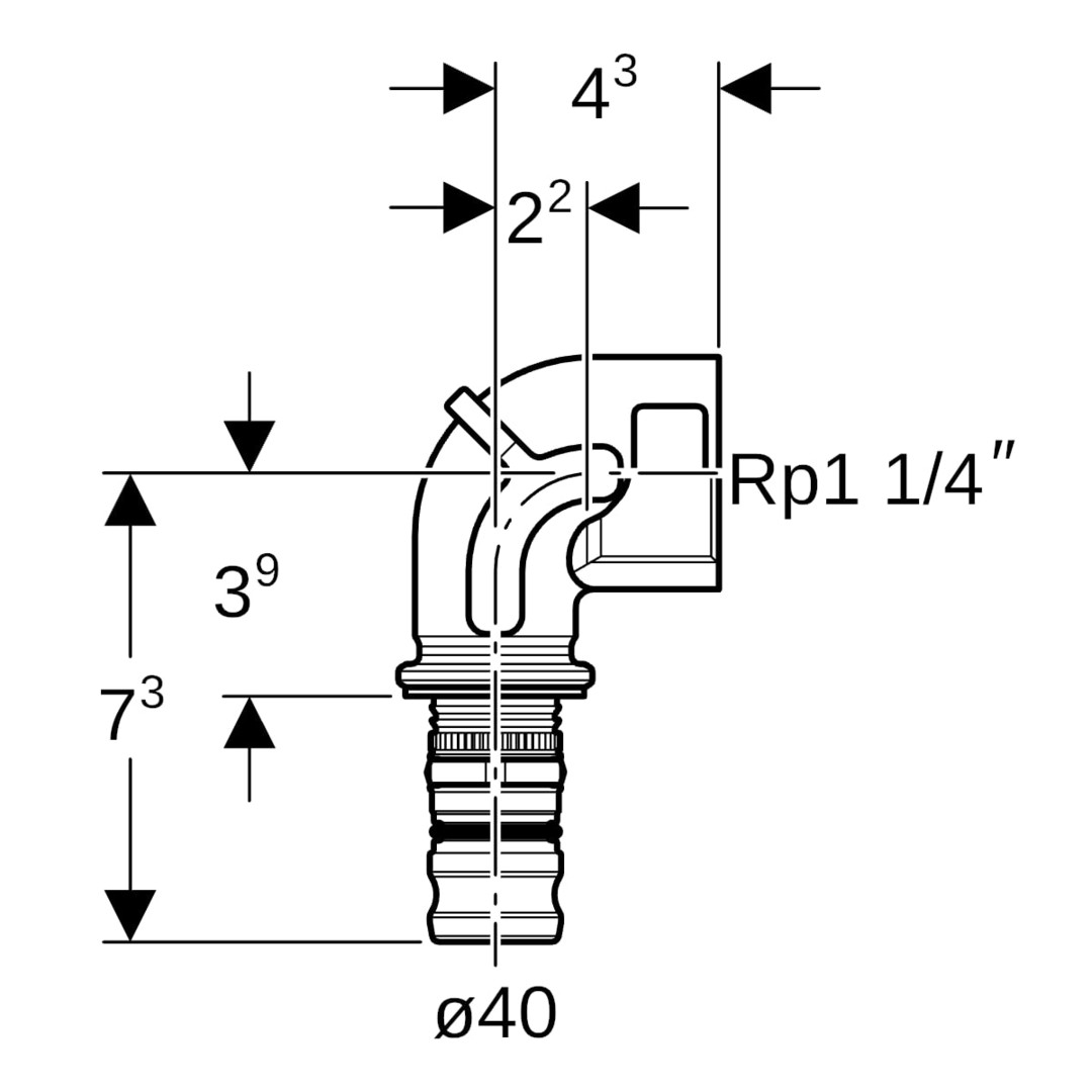 Geberit Übergangsbogen Mepla Ø 40 mm x Rp 1 1/4, 90°, mit IG, Rotguss