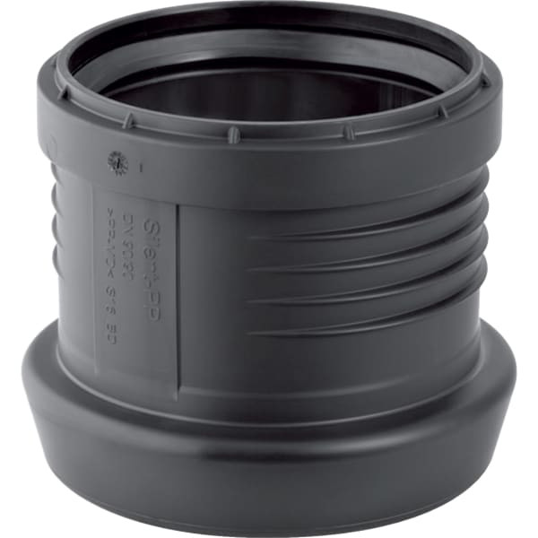 zum Ableiten von Abwasser innerhalb von Gebäuden, für Übergänge von Silent-PP auf Silent-db20, für Übergänge von Silent-db20 auf Silent-PP oder Silent-Pro, schalloptimiert, mit Lippendichtung aus EPDM, Krallring aus Chromnickelstahl, Wärmeausdehnung 0,08 mm/(m*K), PP-MD