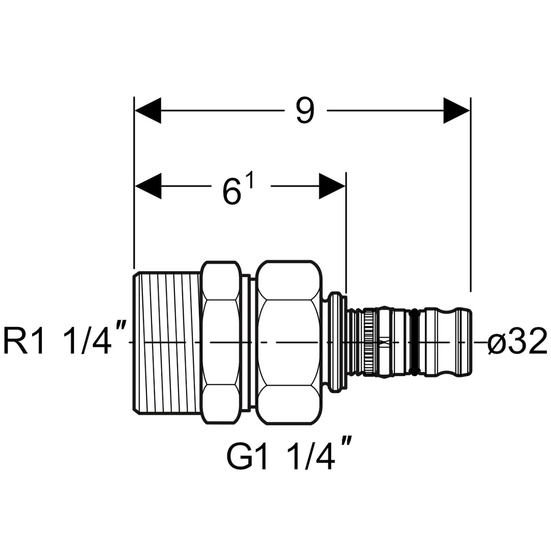 Geberit Übergangsverschraubung Mepla Ø 32 mm x R 1 1/4, mit AG, Rotguss