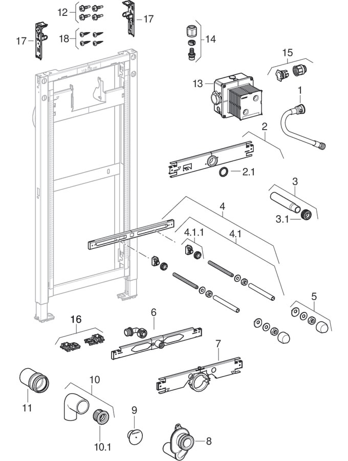 Geberit Urinal-Element BH 112-130 cm, universell, für Sprühkopf