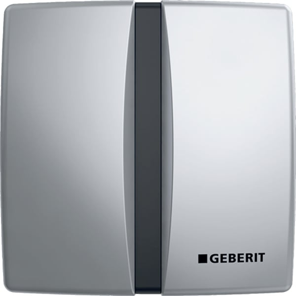 Geberit Urinalsteuerung mit elektronischer Spülauslösung, Netzbetrieb, Abdeckplatte, eckig, aus Zinkdruckguss: chrom / matt
