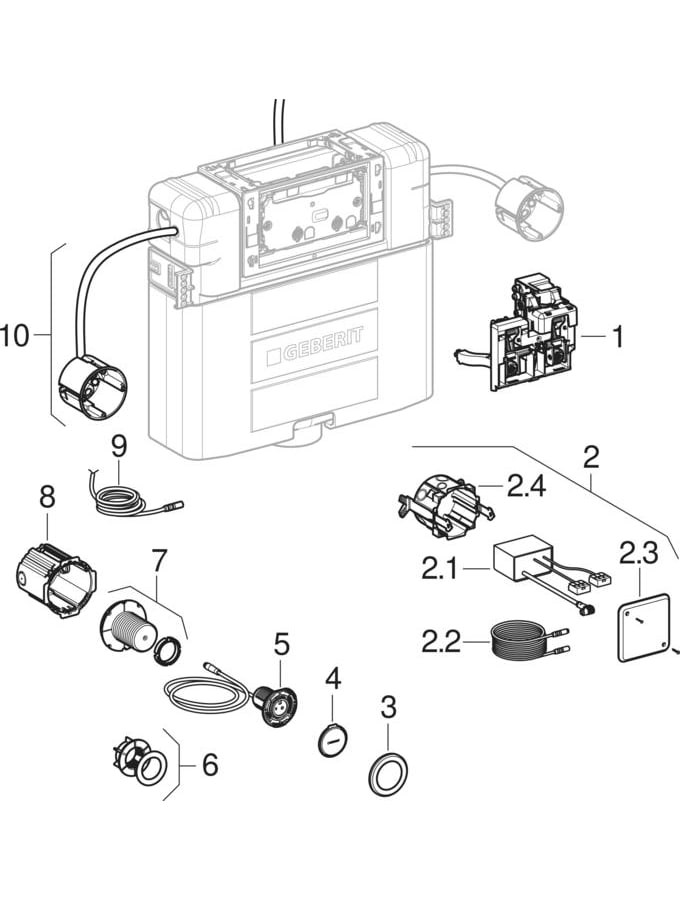 mit elektronischer Spülauslösung, zur manuellen Fernbetätigung von Omega UP-Spülkästen 12 cm über berührungslosen Infrarottaster, zum Auslösen einer 2-Mengen-Spülung, zum Einbau im Massiv- und Trockenbau mit UP-Dose und in Badezimmermöbel mit Kontermutter, für barrierefreies Bauen geeignet, für Omega UP-Spülkästen 12 cm, manuelle Spülauslösung (berührungslos), berührungsloses Auslösen einer 1-Mengen- oder 2-Mengen-Spülung durch Annäherung mit der Hand, 2-Mengen-Spülung über Betätigungsplatte von oben oder von vorne auslösbar, mit Betätigungsplatten Omega20 bis Omega60 oder Abdeckplatten kombinierbar, Stromversorgung durch externes Netzteil, Transformation der Netzspannung auf Kleinspannung 12 V DC, Betrieb mit Kleinspannung, keine Netzspannung im Spülkasten, mit verwechslungssicherer Steckverbindung, Intervallspülung voreingestellt und einstellbar, Geräteeinstellungen und Bedienung mit Mobilgerät über integrierte Bluetooth®-Schnittstelle, mit Control App kompatibel, Hebemechanismus geräuscharm, elektrische Hebevorrichtung selbstkalibrierend, bestehend aus Infrarottaster mit Anschlusskabel Länge 2 m, UP-Dose, Kontermutter, Leerrohr Länge 1,7 m, Lagerbock mit Servomotor und Hebevorrichtung (vormontiert), elektrische Steuerung