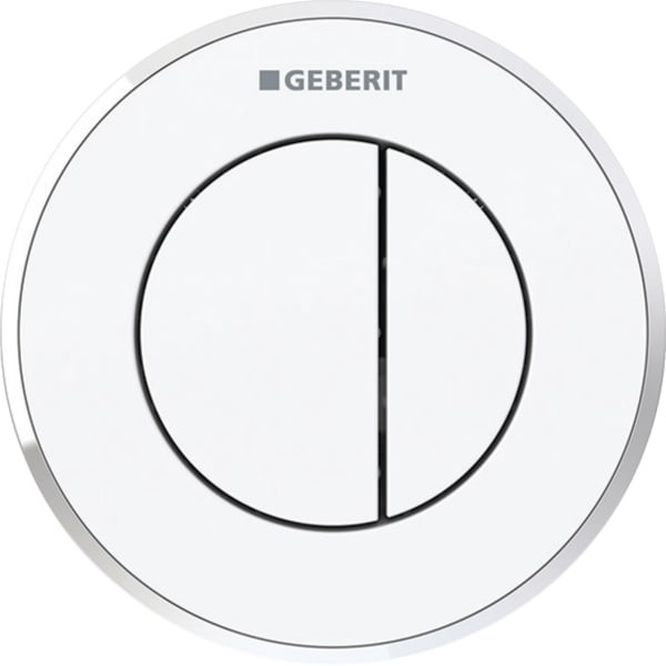 Geberit WC-Steuerung Typ 10 pneumatisch Round 2-Mengen-Spülung, Rosette/Tasten weiß, Ring Hochglanz-verchromt W349782