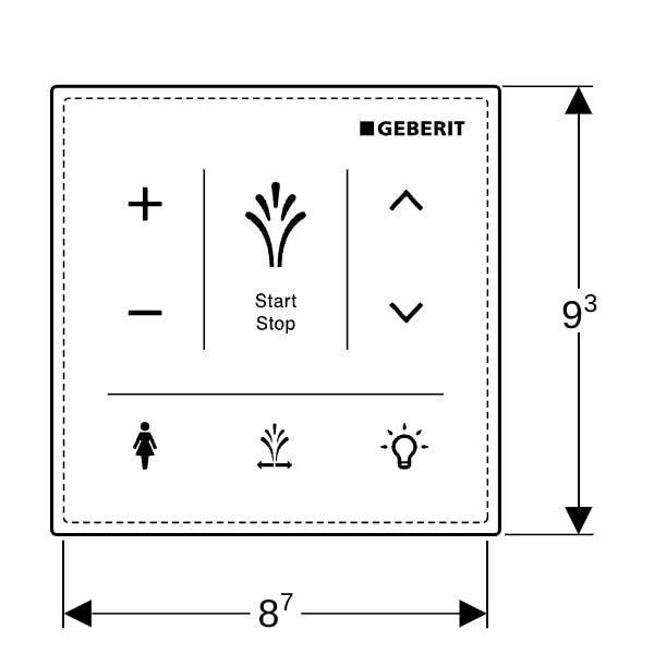 zur manuellen, drahtlosen Steuerung der Dusch-WC-Funktionen, für AquaClean Sela, Bedienoberfläche kapazitiv, Oberfläche aus Glas, Verbindung über Bluetooth, Stromversorgung durch Batterie, Warnung bei schwacher Batterie, mit 3 Lithium-Batterien Typ CR 2032, Befestigungsmaterial