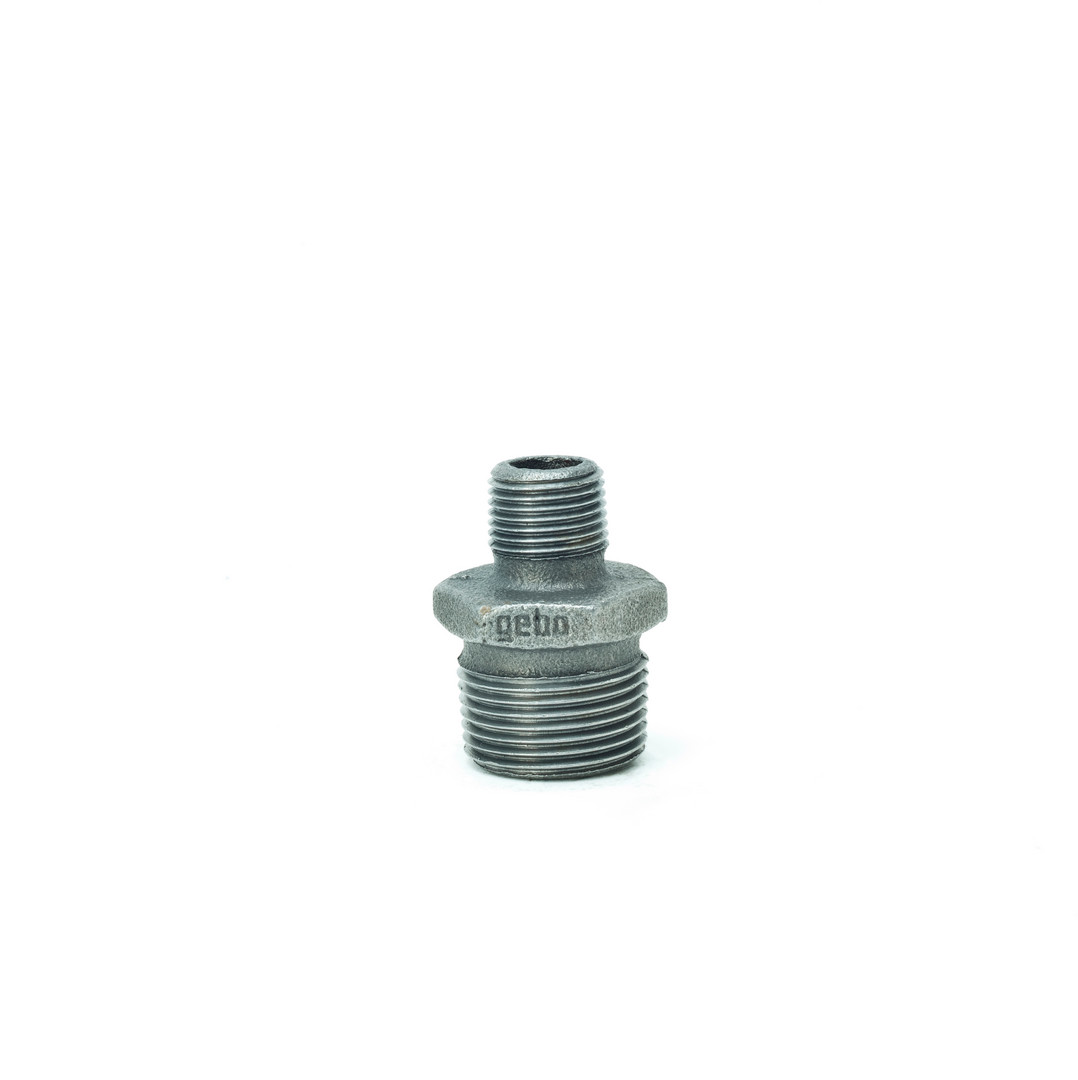 Gebo Gewindefittings aus Temperguss Reduzierdoppel 3/8" x 1/4" - A/A - schwarz