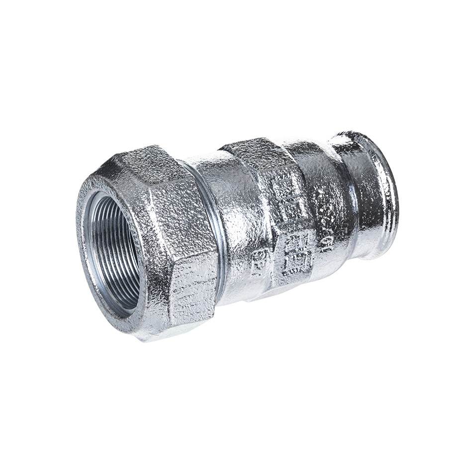 Temperguss-Klemmverbinder, IG, für Stahlrohr, nach DIN EN 10255, DIN 2442 und DIN 2448/DIN 2458 Reihe 1, ISO 65 Medien sind Wasser und Gas (außerhalb von Gebäuden), Druckluft, Heizöl bis 2" (TRBF beachten!) Temperaturen bei Trinkwasser bis 25 °C, bei Heizwasser bis 80 °C, bei Gas -20 bis +60 °C und bei Öl 40 °C Druckstufen von Wasser PN 10 (bis 3/4") bzw. PN 16 (ab 1"), Gas PN 5, Druckluft PN 12,5, Öl PN 6 Prüfungen bei Wasser W534, DVGW-Reg.-Nr.: DW-8511AU2216, bei Gas DIN 3387-1, DVGW-Reg.-Nr. NG-4502AP1454, VdS-geprüft ab DN 25 (Feuerlöschleitungen), Heizöl: bauaufsichtliche Zulassung DIBT, Zul.-Nr.: Z-38.4-212