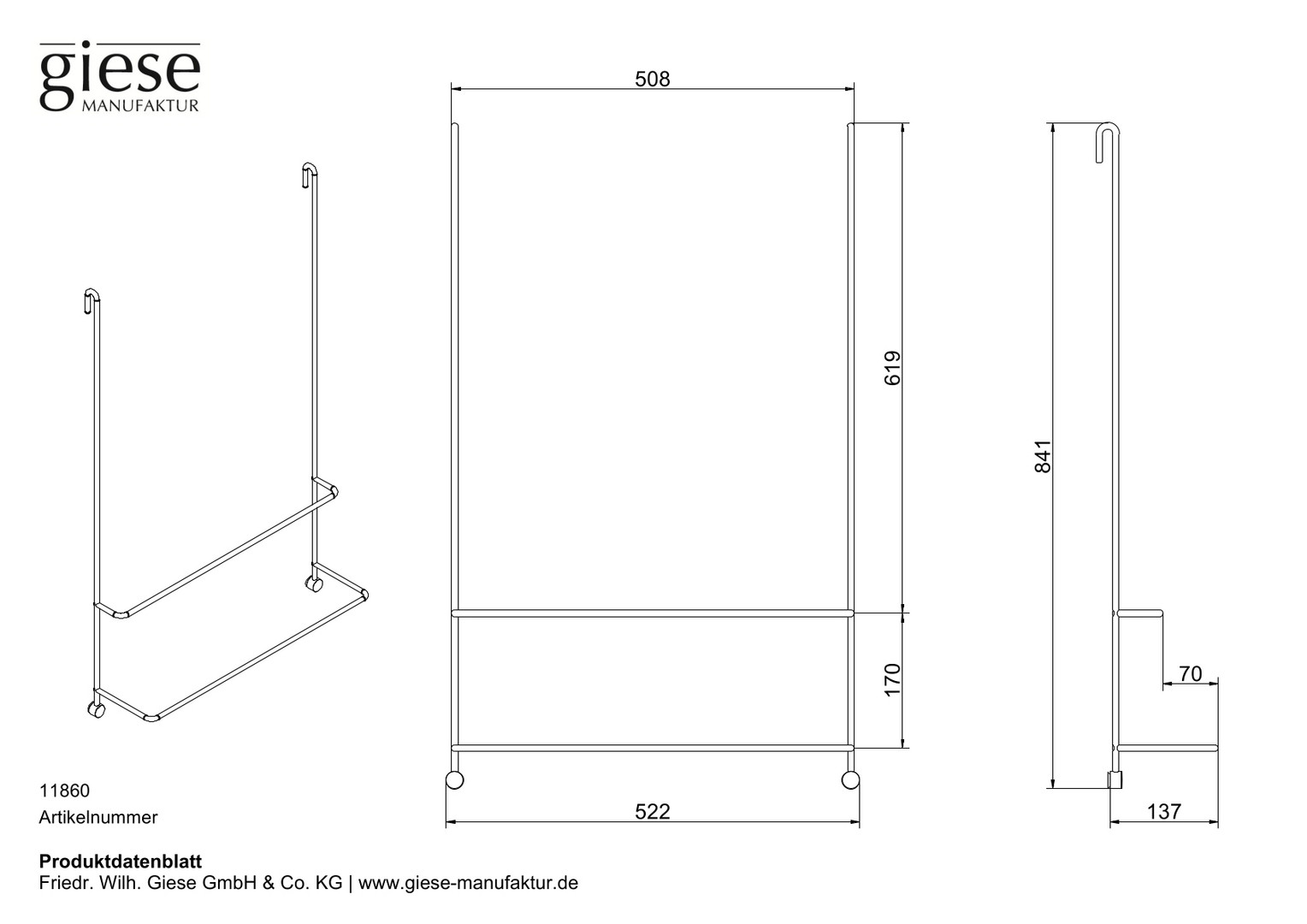 Giese Badetuchhalter Server mit 2 Stangen, 522x841x137mm, verchromt W359220