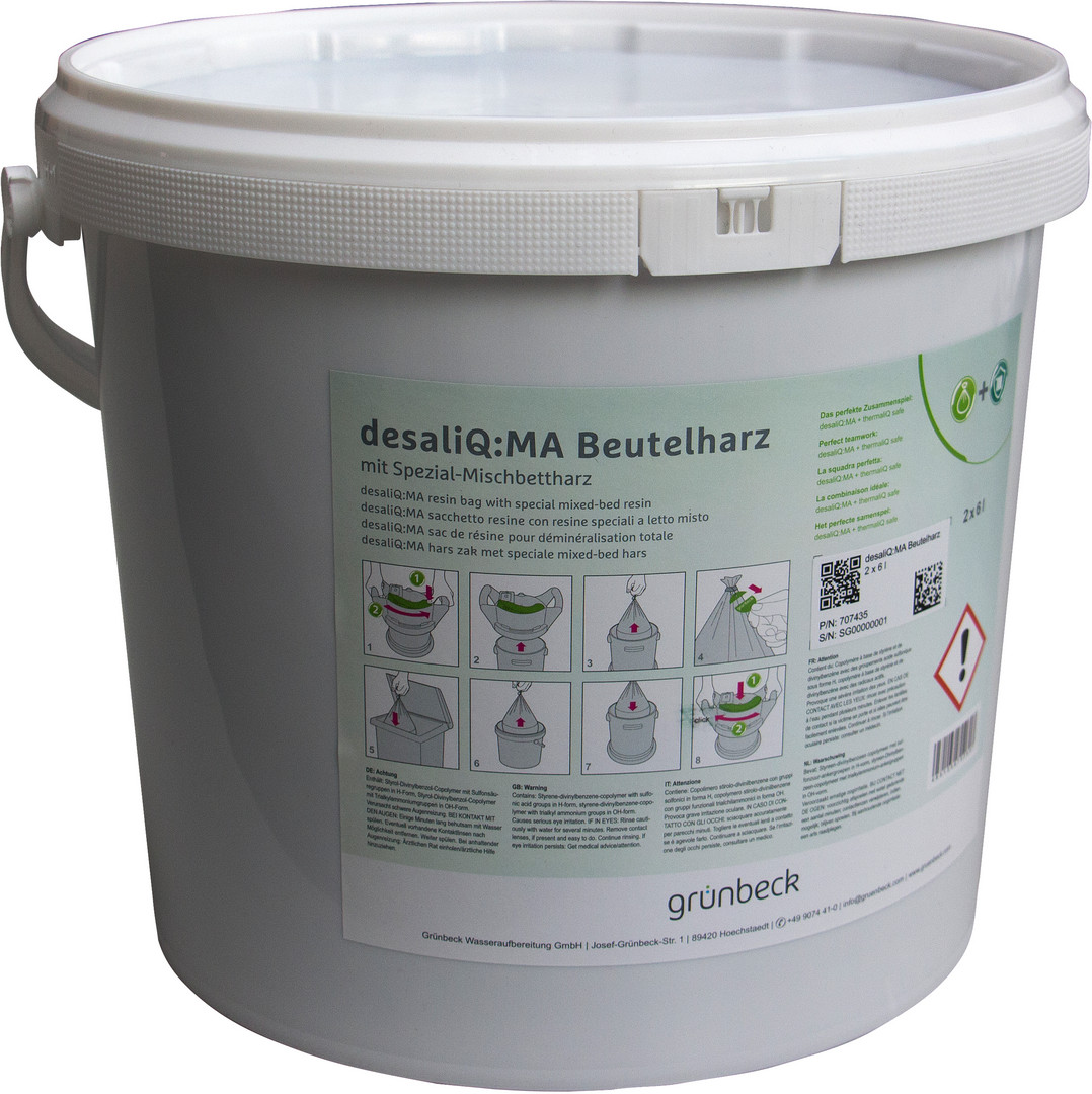 Grünbeck Beutelharz desaliQ MA 2 Stück a 6 Liter, im luftdichtem Eimer