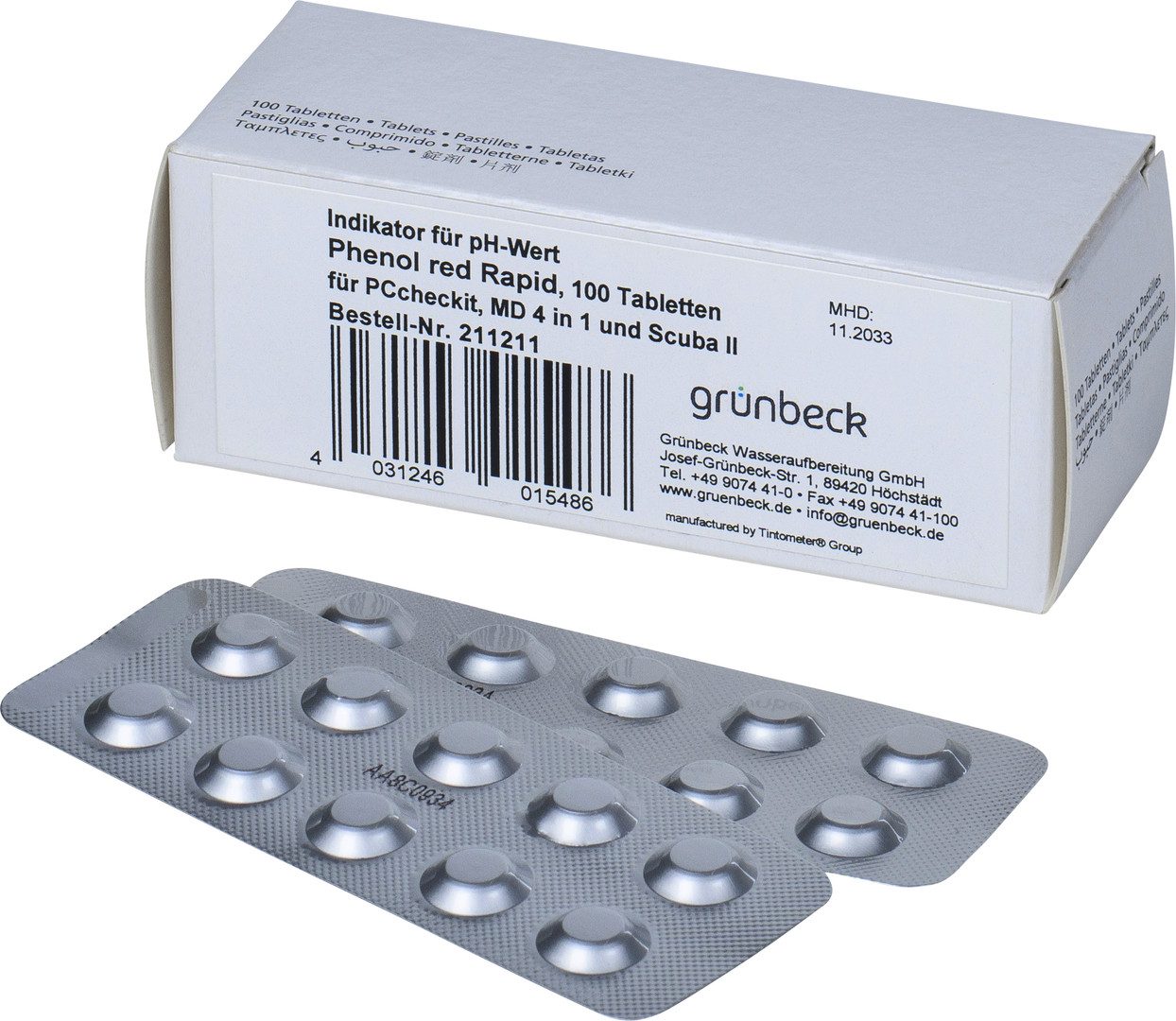 Grünbeck Ersatz-Indikator für pH-Wert, Phenolred rapid, 100 Tabletten