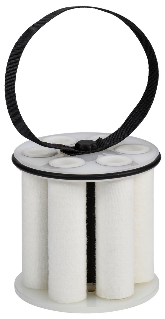 heißwasserbeständig, zur Sanierung von Heiz- und Kältekreisläufen im laufenden Betrieb, filtert mit insgesamt 6 Filterkerzen mit einer Maschenweite von 5 µm Verunreinigungen aus dem Wasser, integrierter Hochleistungsmagnet sorgt dafür, dass metallische und magnetische Schmutzpartikel aus dem Wasser entfernt werden, nach der Aufbereitung lässt sich der Magnetabscheider reinigen, sodass das Filtermodul in kürzester Zeit wieder einsatzbereit ist, in Kombination mit desaliQ Beutelharz in der Mischbettpatrone desaliQ:MB9 eingesetzt, ermöglicht gleichzeitige Filtration und Vollentsalzung des Kreislaufwassers