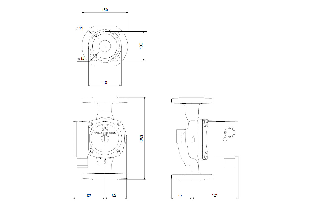 Grundfos Zirkulationspumpe Serie 100 UPS 40-50 FN, 250 mm, PN 6/10, 230 V