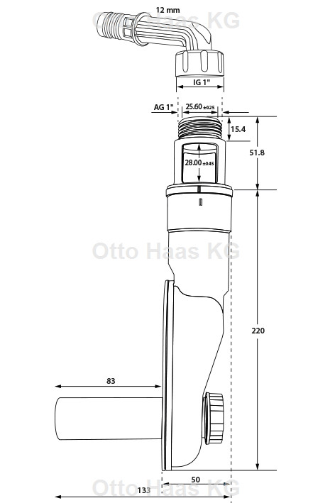 HAAS Abwasseranschlusssiphon mit Winkelschlauchtülle Durchm.: 12mm, nac