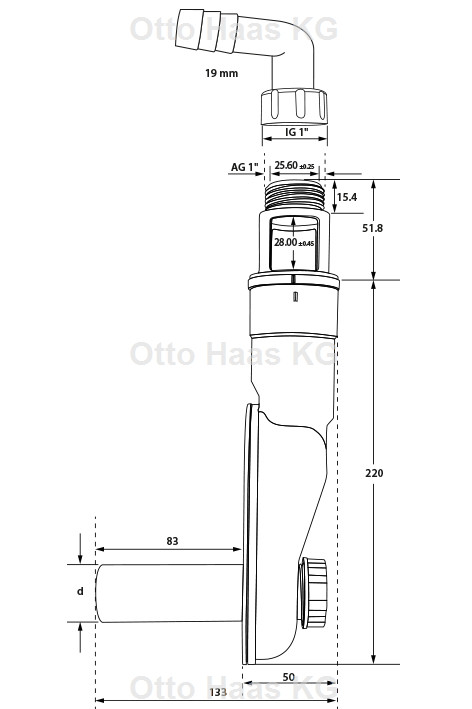 HAAS Abwasseranschlusssiphon mit Winkelschlauchtülle 3/4 / 19mm, nach DIN