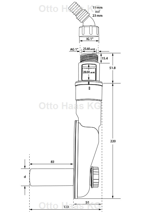 HAAS Abwasseranschlusssiphon mit Winkelschlauchtülle 3/4 auf 1, nach DIN
