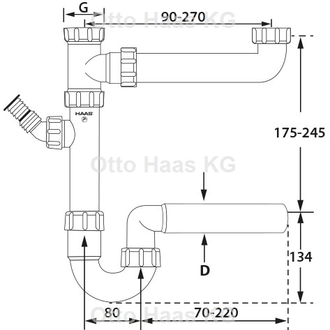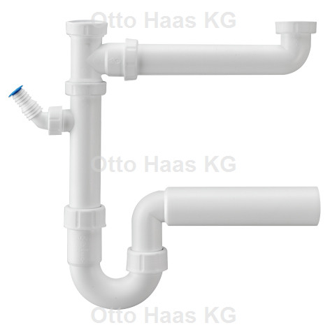 HAAS Doppelspülensiphon DN 56, 1 1/2", mit einem Geräteanschluss 3/4"und 1", Polypropylen, weiß