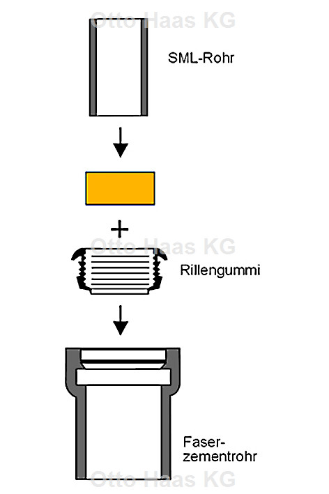 alterungs- und witterungsbeständig nach DIN EN 681-1, zur Verbindung von aufgemufften Faserzement-Rohren z. B. Eternit und Guss-Rohrarten in Verbindung mit Rillengummi oder OHA-Spannmuffe