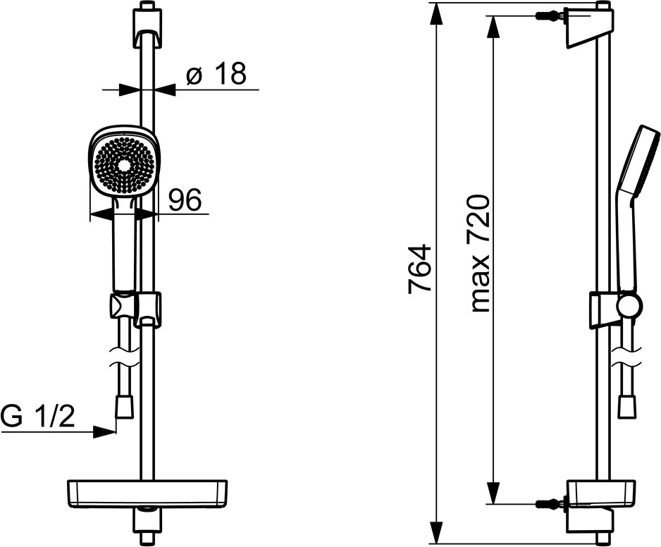 Länge der Duschstange 764 mm