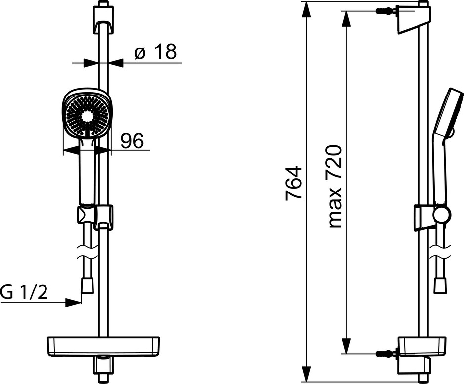 Länge der Duschstange 764 mm
