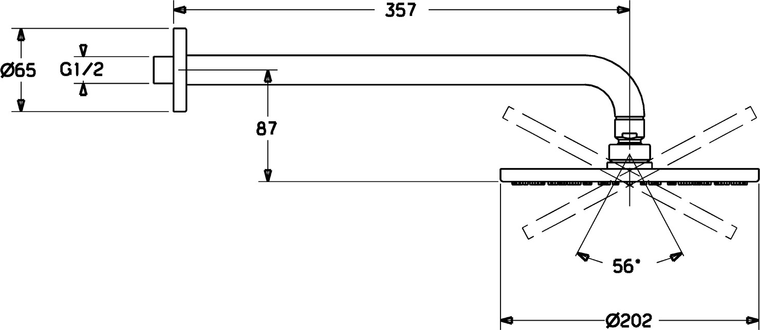 HANSA Kopfbrause HANSAVIVA Ø 300 mm, Wandanbindung, 1-strahlig, Ausladung 357mm, chrom W314836