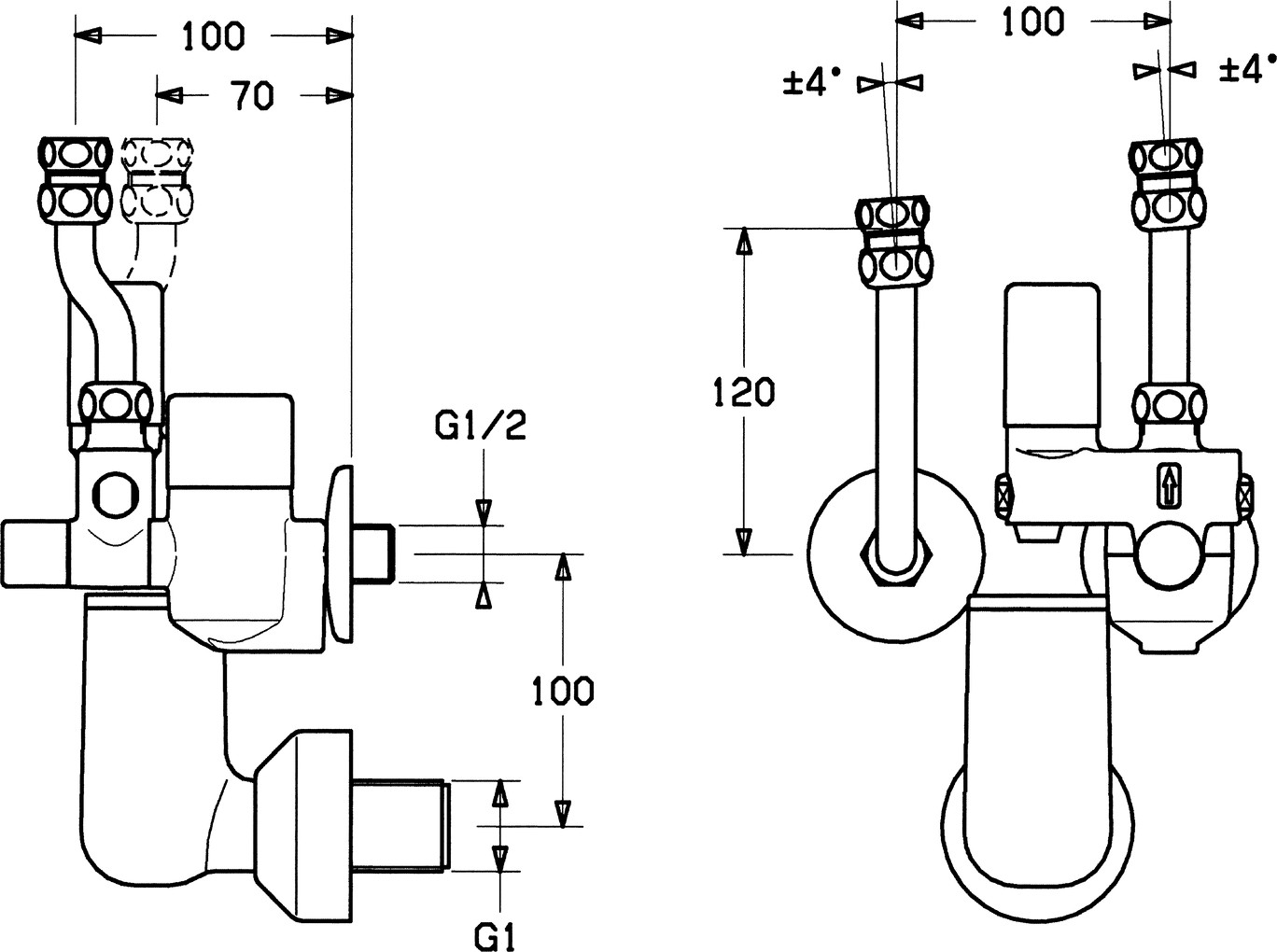 HANSA Sicherheitsgruppe Druckminderer 4 bar, KV 40, Wandmontage
