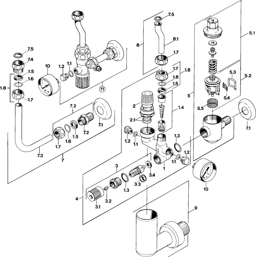 für druckfeste Warmwasserbereiter bis 200 I entsprechend DIN 1988 und DIN 4753, Absperrventil, Prüfschraube, Rückflussverhinderer, Membransicherheitsventil, eingestellt auf 6 bar Ansprechdruck, Manometeranschlussstutzen für handelsübliche Manometer, Ablauftrichter, Ausführung Messing, verchromt, mit Anschlussverschraubung G 1/2, Wandanschluss 100/70 mm verstellbar, Speicheranschluss 100 mm, mit Anschluss für Temperatur-Vormischer