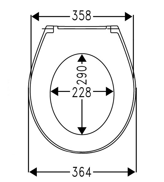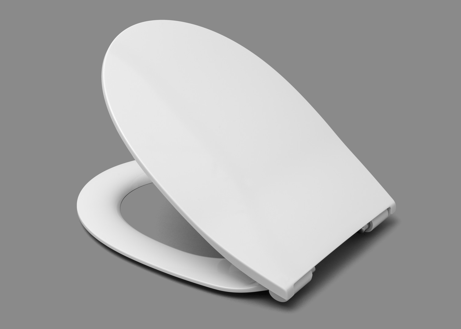 universell, oval, Sandwich (Deckel umschließt Sitzring nicht, Deckel ruht in geschlossenem Zustand auf dem Sitzring, Sitzring von vorne vollständig sichtbar), flach, 2 Deckelpuffer (DPV5), 4 Ringpuffer (SPV8), Urea 131.5 Duroplast, TAKE OFF (WC-Sitz kann mit nur einem Handgriff abgenommen und wieder aufgesteckt werden), Länge in Abhängigkeit vom Scharnier (F0102G 428,5-437,5 mm/F0202Y 418,5-447,5/F4302G 401,4-425,4-440,6-464.6)
