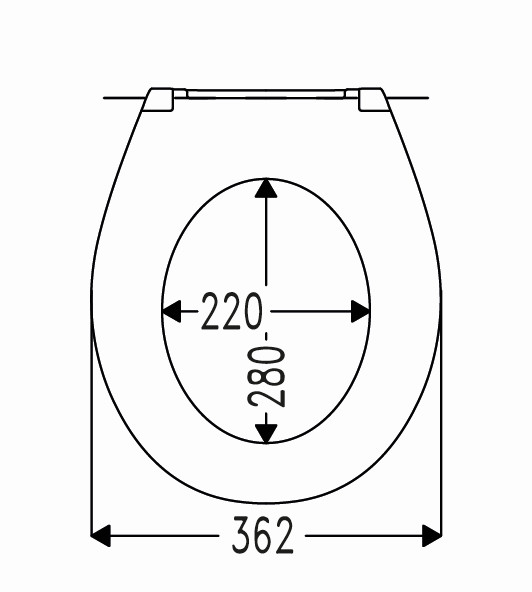 Thermoplast, mit SoftClose und TakeOff, oval, glatte Unterseite, gewölbt, Sandwich, 4x Deckelpuffer (SP45 - 406117), 4x Ringpuffer (SP45 - 406117), Länge in Abhängigkeit vom Scharnier C5801Y 406 - 427/443 - 464 mm