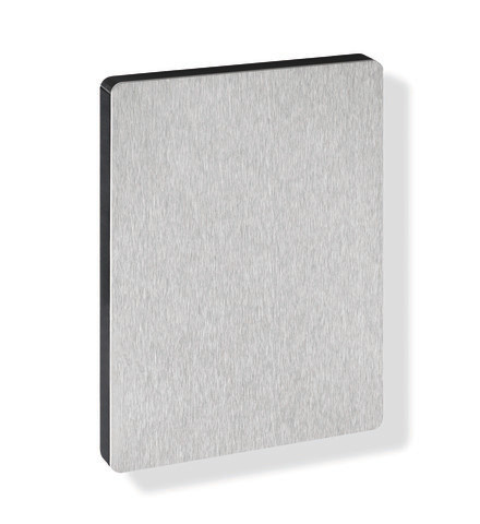 zur Verkleidung montierter Montageplatten mittels Einhängen, Rahmen der Abdeckung aus Polyamid, Frontplatte aus Edelstahl, matt geschliffen