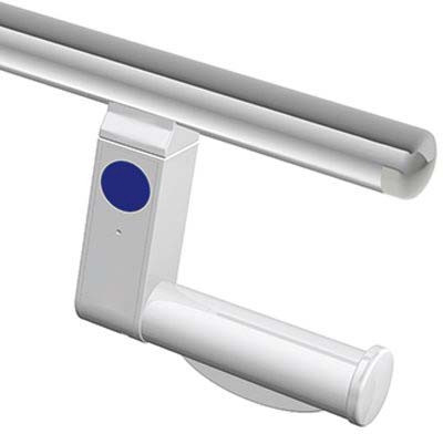 zur Nachrüstung an Stützklapp-/Wandstützgriffen 950.50.3../950.50.1.., integrierte Rollenbremse, aus chromoptisch beschichtetem Polyamid