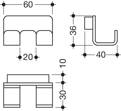 HEWI Doppelhaken 805 60x36x40mm, Edelstahl matt geschliffen