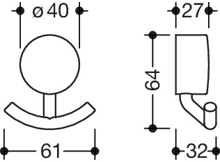 HEWI Doppelhaken System 815 60x63x30mm, Edelstahl verchromt W377578