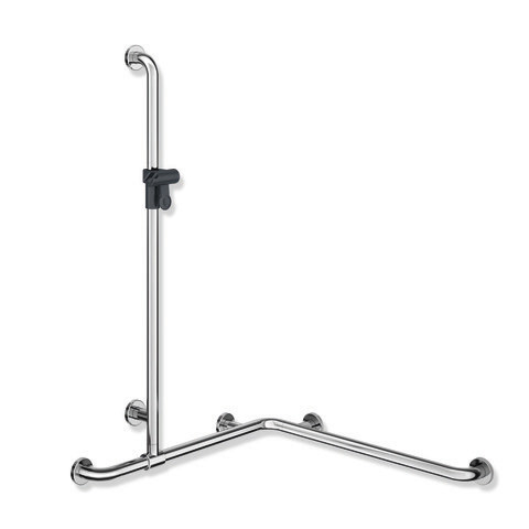 HEWI Duschhandlauf Warm Touch 1100 x 962 mm, signalweiß, mit verschiebbarer Brausehalterstange, Polyamid verchromt W377637