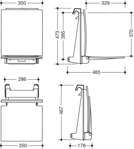 HEWI Einhängesitz System 800 K 350 x 449 x 469 mm, Sitzfläche und Rückenlehne anthrazit