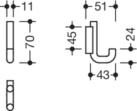 aus hochwertigem Edelstahl, 11 mm breit, 70 mm hoch, 51 mm tief, ø 11 mm, zur Wandmontage, verdeckte Befestigung, mit korrosionsfreiem HEWI Befestigungsmaterial