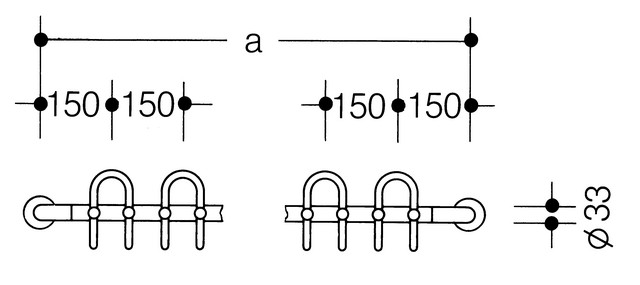 HEWI Garderobenstange d= 33mm, mit Doppelhaken, nach hinten zeigend, stahlblau W379099