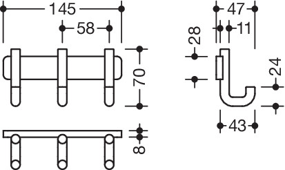 HEWI Hakenleiste 480 mit 3 Haken, matt geschliffen