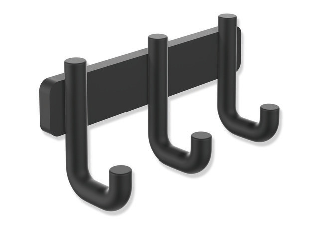 HEWI Hakenleiste 480 mit 3 Haken, pulverbeschichtet, schwarz matt