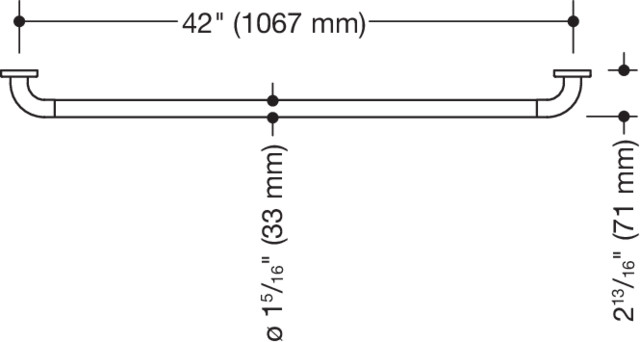 HEWI Haltegriff (USA), Polyamid, chromoptisch beschichtet, Achsmaß 42 inch (1067 mm), Tiefe 2 3/4 inch (70 mm), Stangendurchmesser 1 5/16 inch (33 mm)