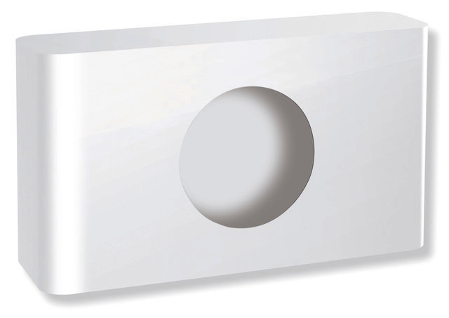 kubischer Grundkörper mit eingerücktem Wandsockel, dient zur Aufnahme und Entnahme von handelsüblichen Hygienebeuteln aus Kunststoff (max. Packungsgröße 130 x 90 x 20 mm), mit Reservoir für eine Ersatzpackung Hygienebeutel, zur Wandmontage, aus Edelstahl, weiß beschichtet