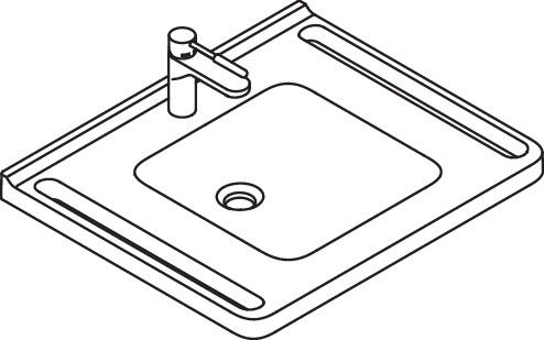 mit Einhebelmischer AQ1.12M10240, mit Ablagefläche und tiefen rechteckigem Becken mit großzügigen Radien, mit Schwallkante zur Wand, integrierte ergonomische Haltemöglichkeit, als Handtuchhalter nutzbar, unterfahrbar nach DIN 18040 und ÖNORM B 1600/1601, belastbar nach DIN EN 14688, für Stockschraubenbefestigung