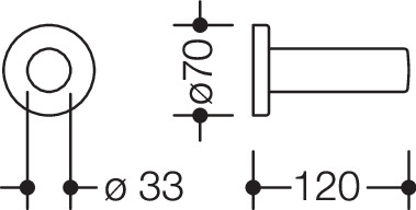 diebstahlgeschützt durch verdeckte Verschraubung, 120 mm lang, Ø 33 mm, Rosette Ø 70 mm