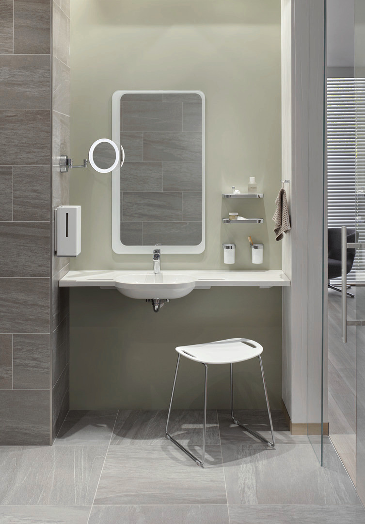 zur Aufnahme handelsüblicher Flüssigseife, mit Innenbehälter zur freien Befüllung, Innenbehälter zur Reinigung herausnehmbar, seitliche Füllstandsanzeige, zur Wandmontage, Schutz gegen Missbrauch durch Verriegelung, Montagehöhe 350 mm über Waschtisch, Entnahmeöffnung aus verchromtem Kunststoff, mit korrosionsfreiem Befestigungsmaterial