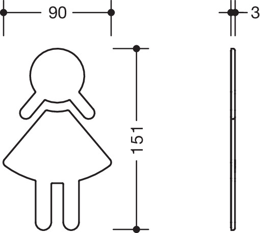 HEWI Symbol Frau 801 87x150x3mm, selbstklebend, matt, tiefschwarz